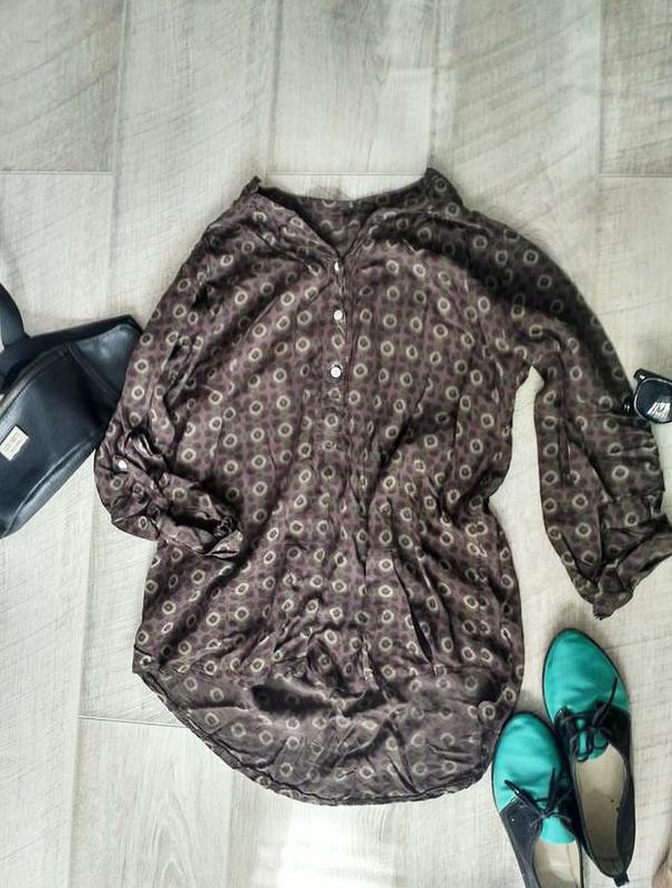 Класна базова блуза-сорочка. Йде як овер сайз, ззаду подовжена. Рукав регулюється