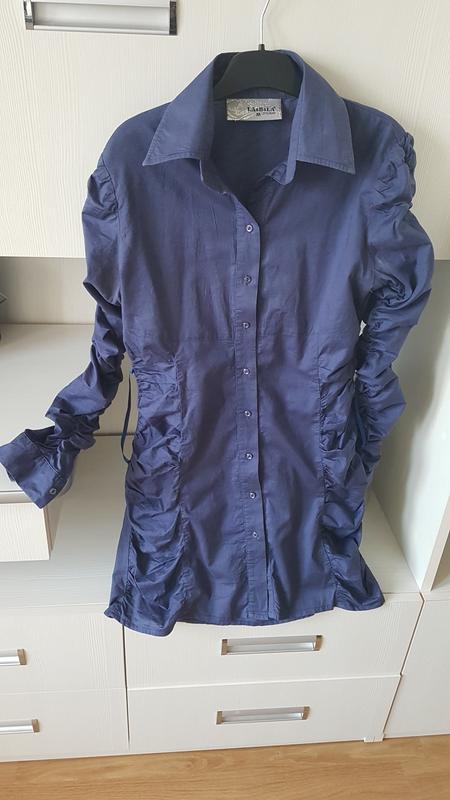 Крутая рубашка. Есть шлейки для пояса. Можно носить без него. Есть нюанс в виде пятнышка от вина на рукаве. Так как рукава в складочку, оно в них прячется. Размер С-ХС. Не М.
