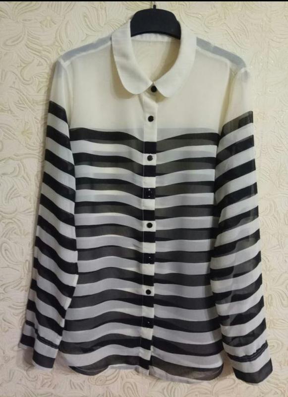 Полупрозрачная рубашка 48-50 р-ру.,в актуальную полоску, мерцающей цвета, бирки срезаны. Состав: полиэстер. Замеры: плечи 37 см.; рукав 61 см.; об.грудей 53 см.; талия 45 см; стегна 52 см.; длина. изделию 64/67 см. Перешлю после 100% оплаты на карточку. Отправлю Новой или Укр.почтой. По дополнительной информации обратитесь.
