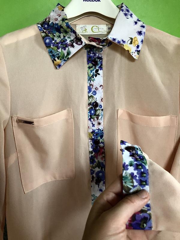 Очень красивая рубашка нежного персикового цвета с отделкой.Новая.Рукав подворачивается.Размер указан 46,но можно на 44-46.
