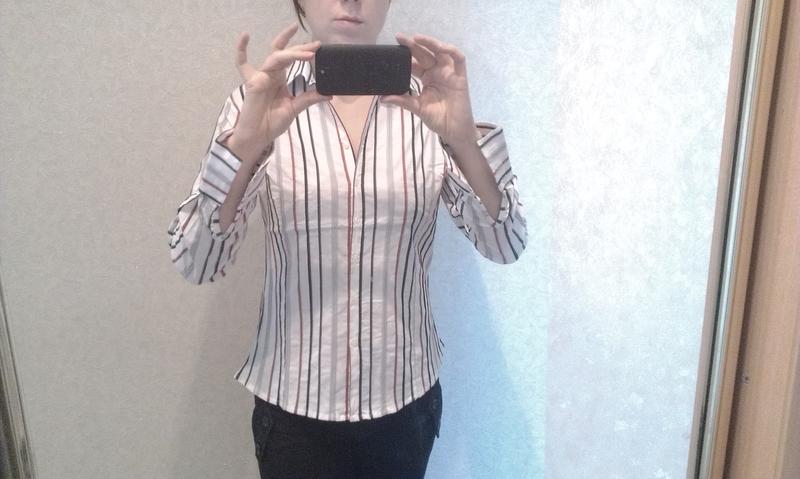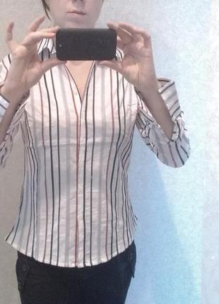 Хлопковая Блуза батник рубашка женская деловой стиль размер L-XL / 46-48 / 12-14 Производитель - бренд "Enisse", Турция Новая, с этикеткой. Состав: 95% хлопок, 5% эластан. Идеально подойдёт как к джинсам, так и к любой классической, офисной одежде, деловой юбке, брюкам, а также стилю casual. Цвет белый в продольную полоску синего, серого и тёмно-красного цветов. В реальности ярче, чем на фото. За счёт продольной полоски и приталенной модели визуально стройнит. Хорошо тянется и отлично садится по фигуре. Создаёт красивый женственный силуэт. Замеры в спокойном состоянии: Размер L ширина спинки – 40 см, ПОГ – 46 СМ, ПОТ – 40 СМ, ПОБ – 48 СМ. Длина рукава – 61 см. Длина рубашки – 67 см. Размер XL ширина спинки – 42 см, ПОГ – 50 СМ, ПОТ – 45 СМ, ПОБ 54 СМ. Длина рукава – 63 см. Длина рубашки – 67 см.