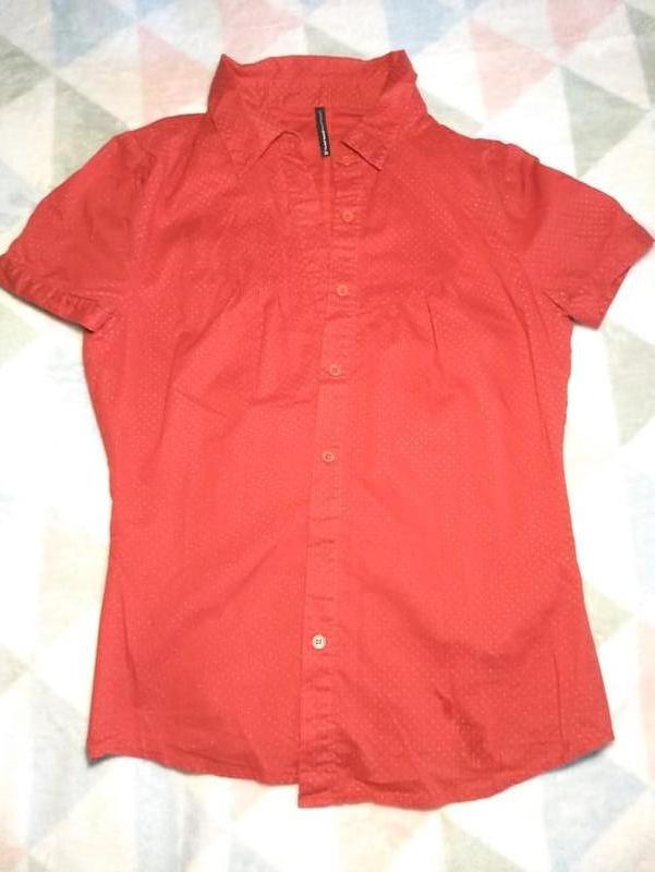 Сорочка з рукавом-ліхтариком. В дрібну білу крапку. Колір яскравий, як на другому фото. ПОГ 43 см, довжина 57 див.
