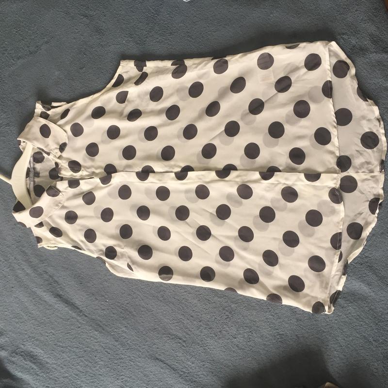 Легенька,фірмова блуза досить прозора в гарному стані в горошини!за додатковими параметрами звертайтеся в профіль)