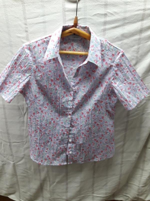 продаю женскую рубашку EWM в отличном состоянии.размер 16.замеры.длина рубашки 60см.ширина в плечах41см.полуобхват груди.55см.ширина рубашки50см.ширина внизу55см.рубашка на пуговицах.длина рукава23см.ширина рукава 18см.