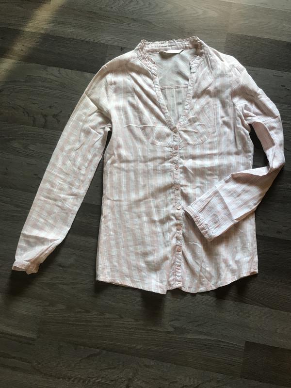 Сорочка приталені, з довгим рукавом. Ідеально підійде під шорти, джинси. Колір: світло рожева смужка з люрекмовой ниткою. Дуже тонка і легка (влітку в жарку погоду буде дуже комфортна в шкарпетці). Розмір 46-48 (маломірний xl). Додаткові фото і опис за запитом.