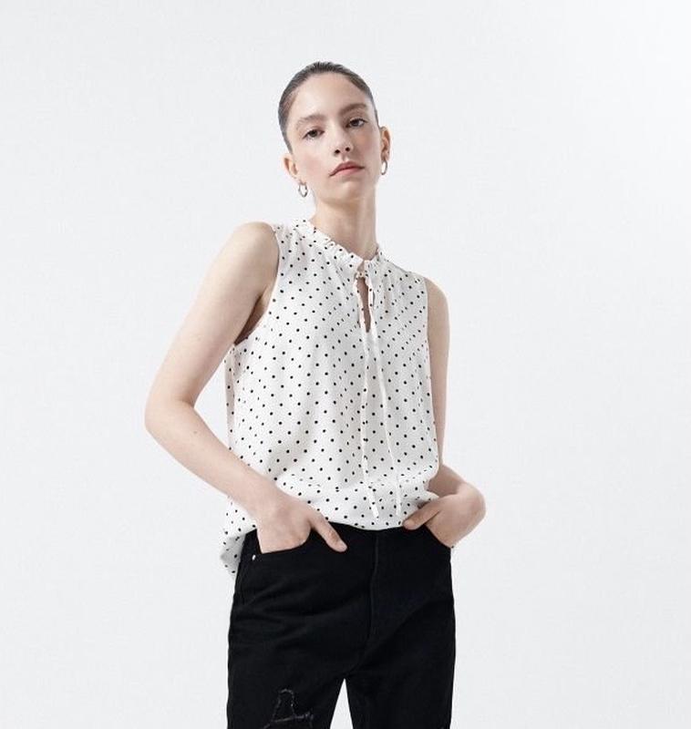 Лёгкая котоновая рубашка безрукавка в горошек, свободная,перед на пуговицах, низ полукругом, приятная к телу. Состояние идеальное! ДЛИНА 66 ПОГ 47 ПОТ 50 ПОБ 56