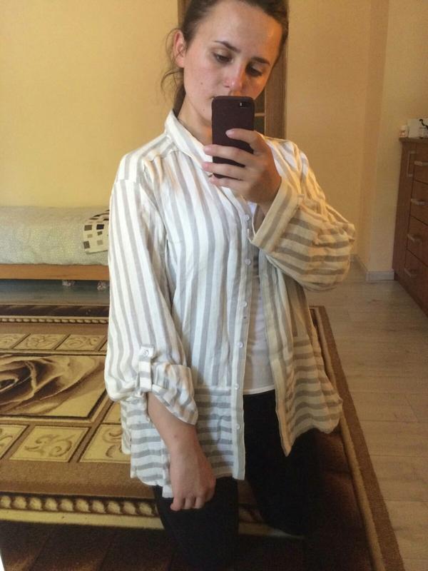 стильна і легка сорочка тканина похожа на лляну,не синтетична рукавчики регулюються можна брати і на менший розмір як оверсайз,чи під пояс )