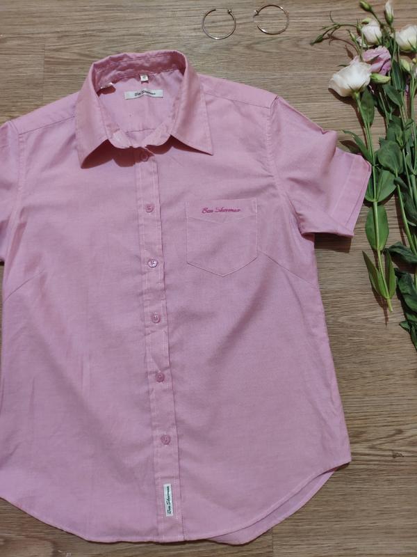 Женская рубашка с коротким рукавом, светло-розового цвета, отличное состояние, 100% хлопок