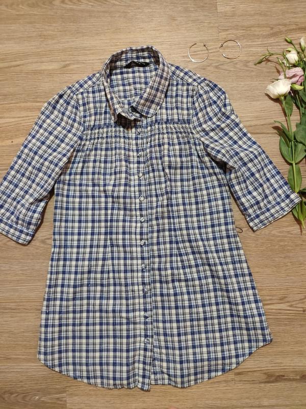 Рубаха удлиненная, в клетку, на пуговицах