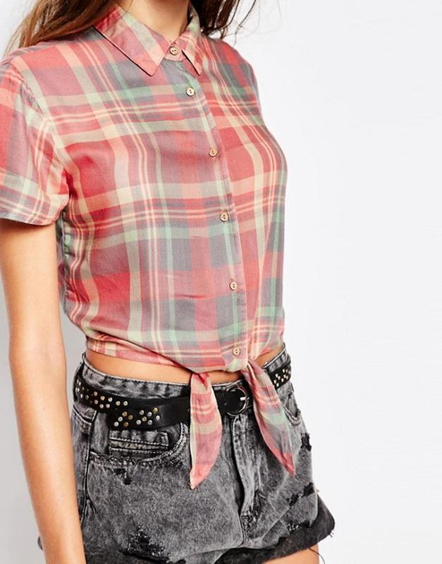 Pull&bear укороченная клетчатая рубашка в клетку с узлом и коротким рукавом