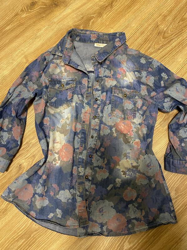 Джинсова рубашка б/у , одягнена була пару разів, стан просто ідеальний. Маткріал 100% катон, виробник Туреччина . Рукавчик регулюється , можна робити коротший. Стильно буде виглядати під любі джинси та шорти.