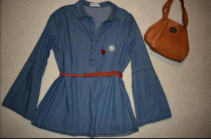 В идеальном состоянии. Хлопок. Лёгкая. Рукав клеш. Очень красиво и стильно смотрится.Замеры :подмышки 62,5 см. ПОГ 62 см. Ширина внизу 66 см, по бокам разрезы 10 см. Длина рукава до плеча 63 см. Плечи 44,5 см. Длина полностью по спинке 74 см.