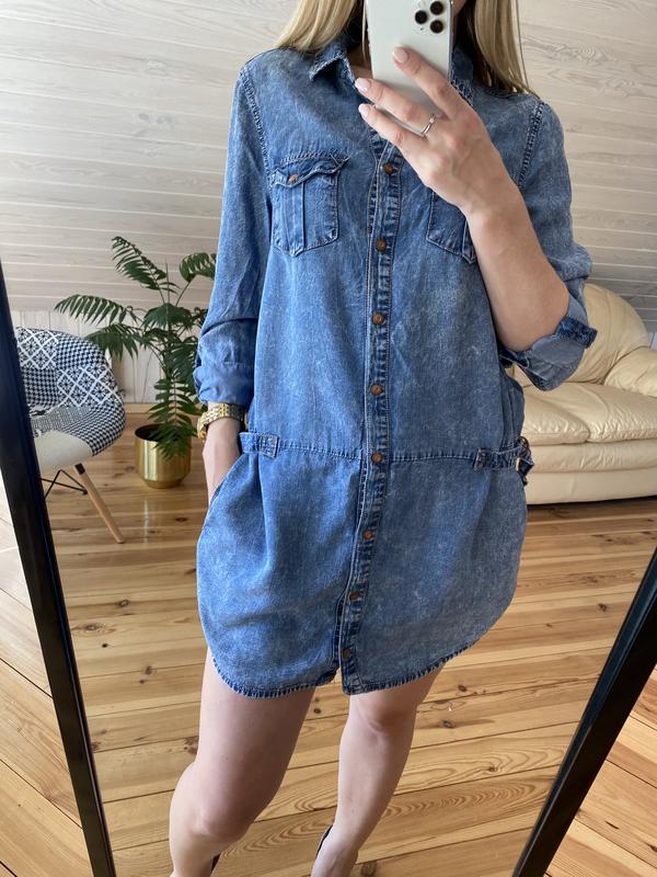 Джинсовое платье-рубашка с карманами