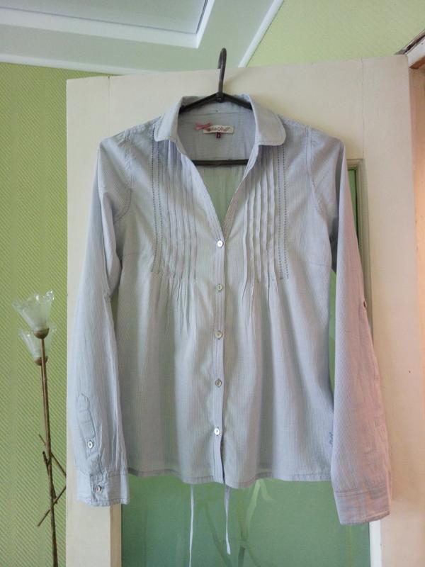 Распродажа! Цена указана окончательная, без торга) Всегда в тренде! ХИТ 2020! Страна производства: Индия БАЗОВАЯ ВЕЩЬ! ОЧЕНЬ КРАСИВАЯ И СТИЛЬНАЯ неведомая белая рубашка блуза в мелкую голубую полоску с драпировкой на груди Аккуратный круглый воротничек рукав подстегиаается планкой на пуговицу. на спинке по талии есть кулиска(утяжка лентой) Мягкий тонкий Коттон отличный вариант на каждый день, на мероприятие или В офис свободная И комфортная НАТУРАЛЬНАЯ, НЕ ПАРИТ Качество безупречное! УКАЗАН РАЗМЕР 8 Подойдет на 42- 44рр, S ЗАМЕРЫ: ПЛЕЧИ 34 РУКАВ 65 ПОГ 45-46 ПОТ 43-44 ПОБ 48 ДЛИНА 60 МАТЕРИАЛ - КОТТОН СОСТОЯНИЕ - ИДЕАЛЬНОЕ, НОВОЕ БЕЗ БИРКИ СПАСИБО, ЧТО ЗАШЛИ В МОЮ ШАФУ) СМОТРИТЕ ВСЕ МОИ ТОВАРЫ! Заходите на мою страничку за покупками, часто выкладываю новую одежду и обувь по очень приятной цене) Добавляйтесь в мои подписчики) Буду всегда вам рада!