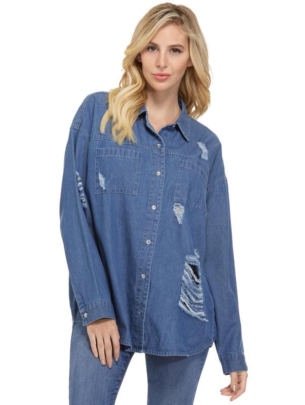 Джинсовая рубашка, с потертостями. Рубашка на пуговицах