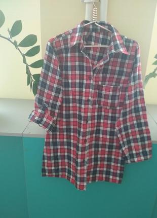 Рубашка в клеточку с одним карманом Рукав подстегиваеться на внутренний хлястик.Пуговица с наружи.