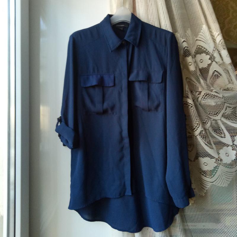 удобная рубашка, не просвечивается. ткань плотный шифон размер М/L длина по спинке 78см длина переда 66см рукав 62см ПОГ 55см ПОТ 52см без дефектов