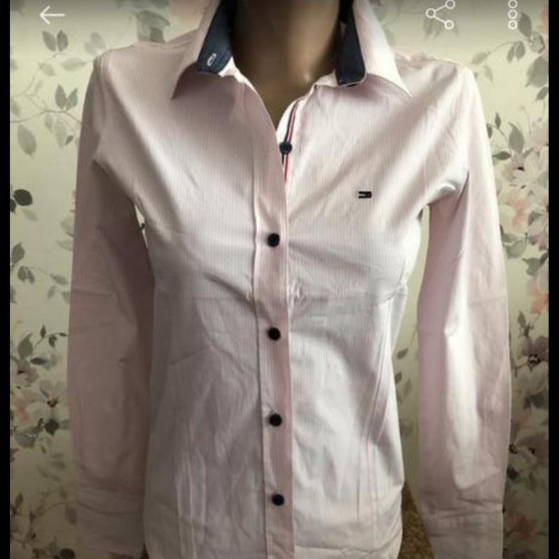 Якісна сорочка ТН. Розмір S. Бавовна 95% . Стан нової, без недоліків. Красива забарвлення, в тонку дуже делікатну рожеву смужку. Пересилаю.