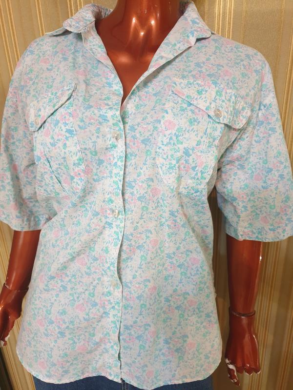 стильная рубашка в идеальном состоянии, ткань-х/б,приятная к телу ,интиресный цветочный принт,в реале смотрится шикарно