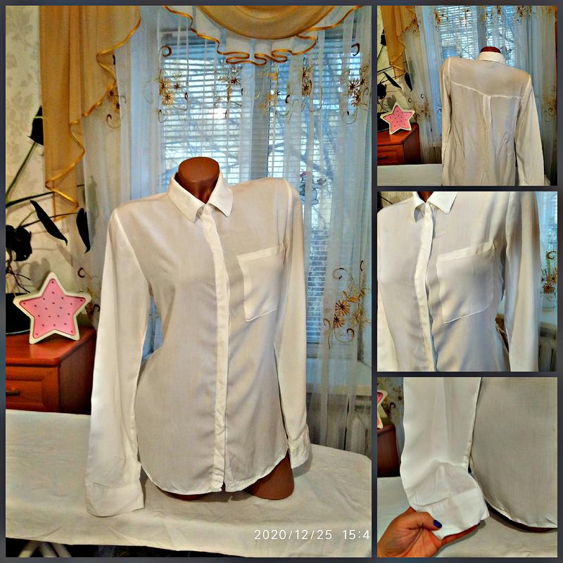Белая рубашка ткань Вискоза размер S длина 68 см рукав 62 см пог 50 см