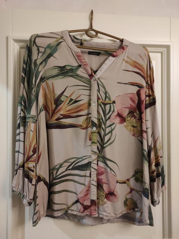 Шикарная рубашка - тропический сад. очень красивый принт , цвета как на фото. Грудь 56 Длина 65