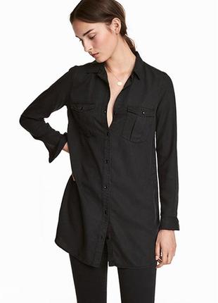 довга джинсова сорочка від бренду H&M розм. 34 № 0301656005 Мірки: плечі 36см, пог 42см, довжина 80см, рукав 56см Довга пряма сорочка з м'якого деніму з Tencel™-лиоцелла. На сорочці комір і застібка спереду, а також нагрудні кишені зі складками. Довгі рукави з манжетами на гудзику. Склад: 100% лиоцелл Вигляд товару: з бірками