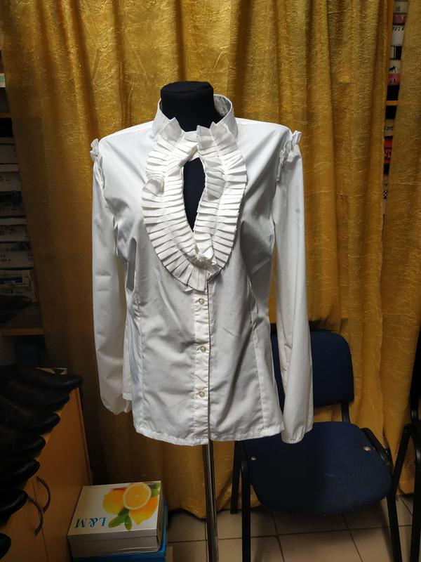 Рубашка ярко белого цвета, фотографировала в магазине плохое освещение. Новая. Замеры предоставлю