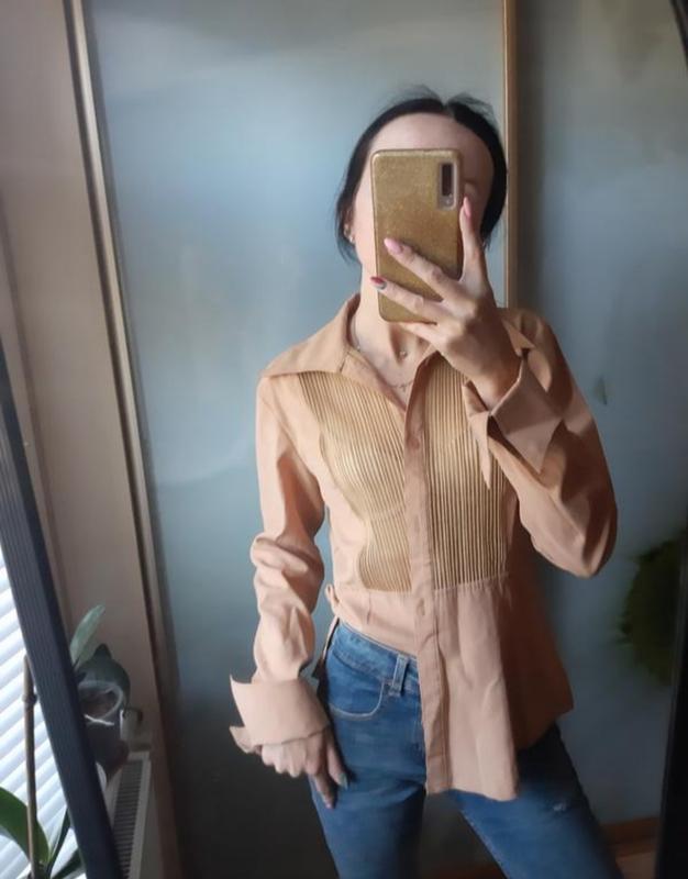 классическая рубашка песочного цвета спереди вставки из сетки длина по спинке 61 плечи 40 рукав от плеча 57 пог 45 пот 42 без пятен и дефектов
