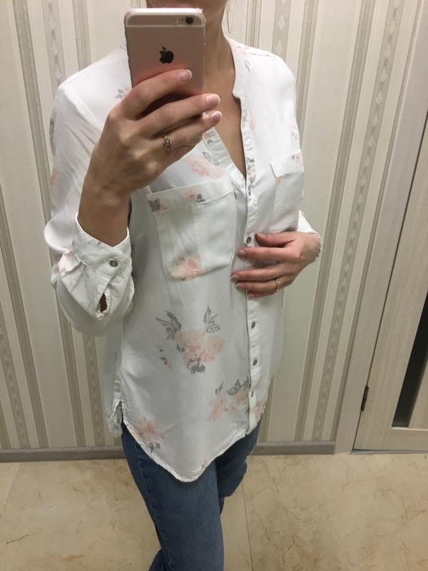 Классная, легкая рубашка, ткань очень мягкая Замеры: длина сзади 69см Длина спереди 65см Плечи 40см Ширина под подмышками 50см Рукав 57см Глибина декольте 20см Прямой крой