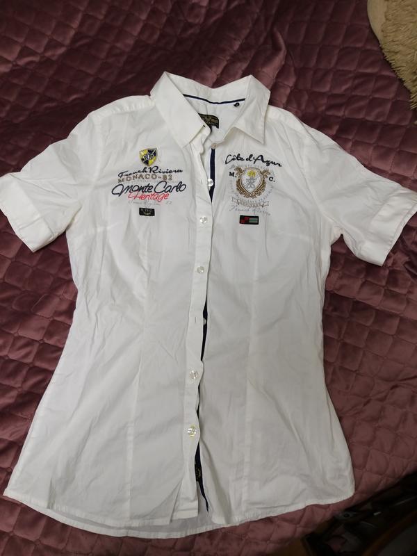 На фото не глажена.Чистая,,одевалась пару раз,но стала мала.Оооочень крутое качество и Шикарная рубашка.фасон -по фигуре сидит 💝💘и детали💥💫пуговицы брендированы)Я не планировала её продавать,но она скучает.Котон высочайшего качества!!!! и это дорогая вещь) Только на С!длина 63,подмышками 46,рукав 22,плечи 37,талия 41)Отправка Новой почтой после оплаты на карту