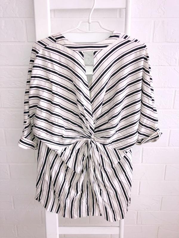 Стильная рубашка в полоску с интересной спиной и разрезами. Двухсторонняя. Можно носить и так, и так. Очень стильно смотрится. Рукав 3/4.