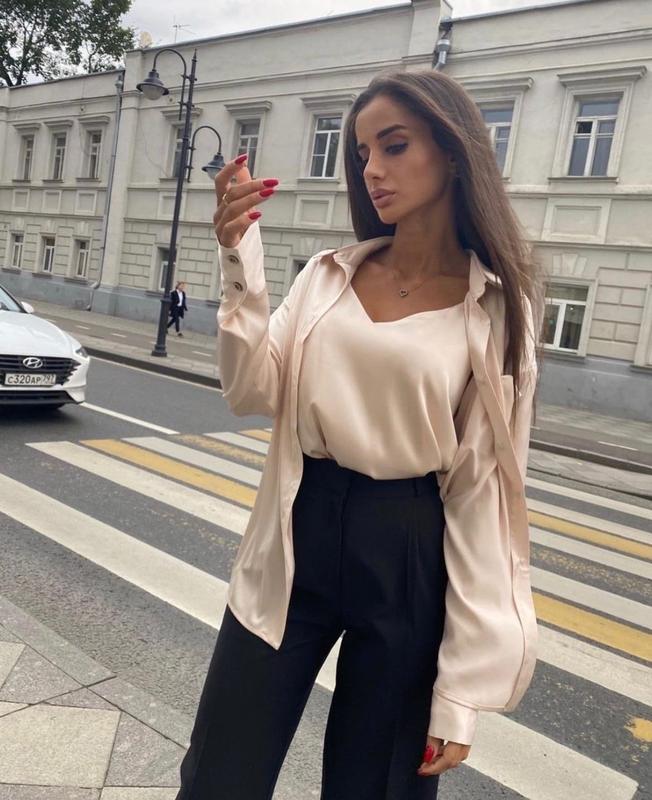 Рубашка +топ Модель or382 Ткань : шёлк армани Размер:универсальный (42-46) Цвета : беж мокко чёрный Шикарная двойка топ+блузка Можно носить отдельно , а так же вместе.