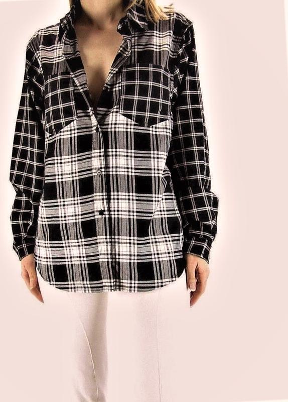 Рубашка бойфренд в черно-белую клетку микс из 2-х тканей на 48-50 рр можно и больше