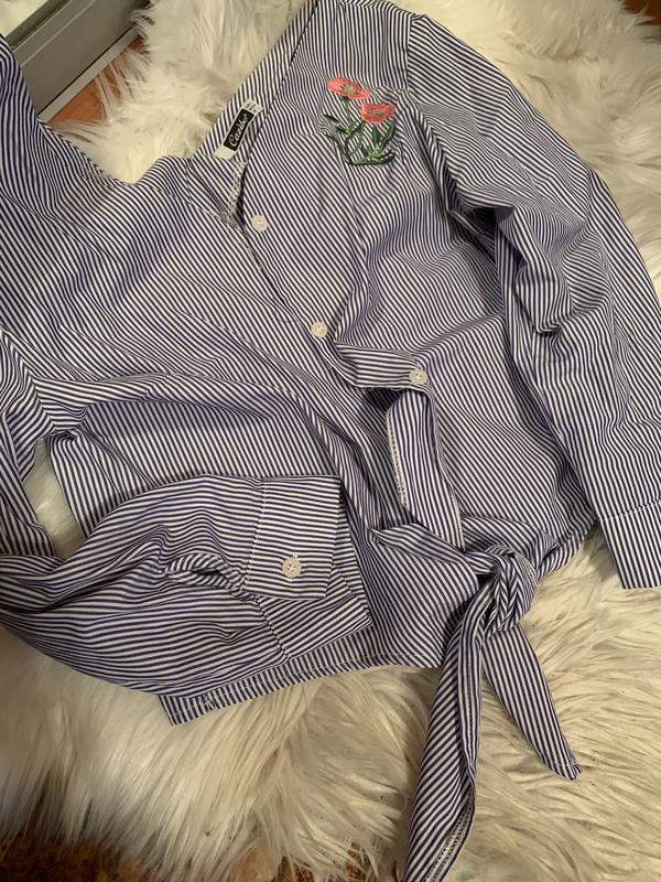 Очень красивая блуза /рубашка Открытые плечи и на завязке, слегка укорочена Размер указан Л, но подходит С и М