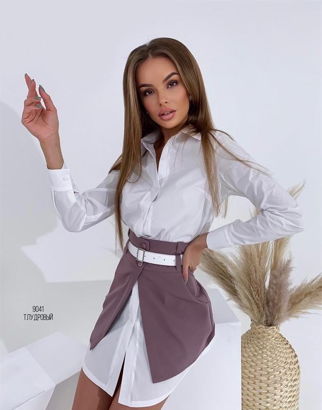 Платье-Рубашка Размеры: 42-44, 44-46 Платье-рубашка + юбочка баска Пояс в комплекте! Ткань - коттон + креп костюмка Цвета: белый + капучино, белый + черный, белый + темно-пудровый