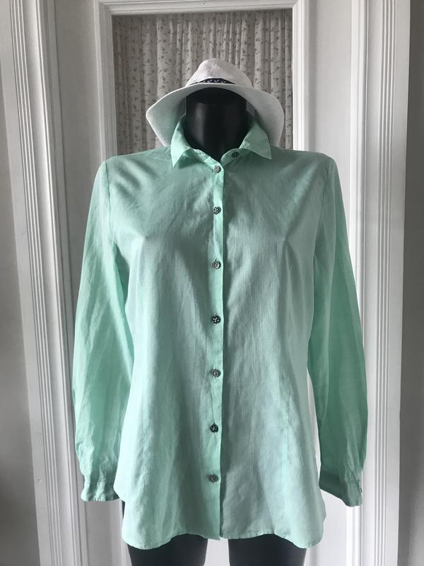Отличная рубашка от Hugo Boss красивого мятного цвета. Шикарная фурнитура, фасон, состояние. Тонкая, легкая , комфортная вещь. Замеры:длина-64 см, ПОГ-48 см, ПОТ-45 см, ПОБ-53 см, рукав-61 см.