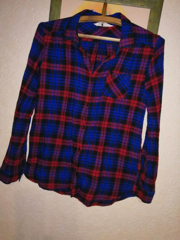 Крутая рубашка в клетку h&m указано на 12-13 лет на рост 158см 160/80,но подойдёт и на s-xs Размер Замеры плечи -42см пог-47см рукав-58см длина -65см
