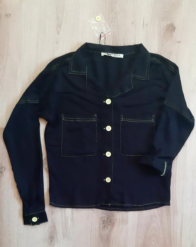 Чёрная рубашечка, прямого кроя, рукав спущенный. Отстрочка и пуговицы цвета "электрик". Состав: вискоза 100%. ☆☆☆☆☆☆☆ 📍товар высылается при частичной или полной оплате на карту. ☆☆☆☆☆☆☆ Длина 53см, рукав от горловины 63см, грудь 102см.
