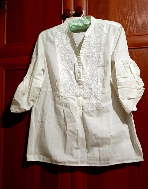 хорошего качества...красивая вышивка...... по плечам 39 см по груди 57 см длинна 70 см