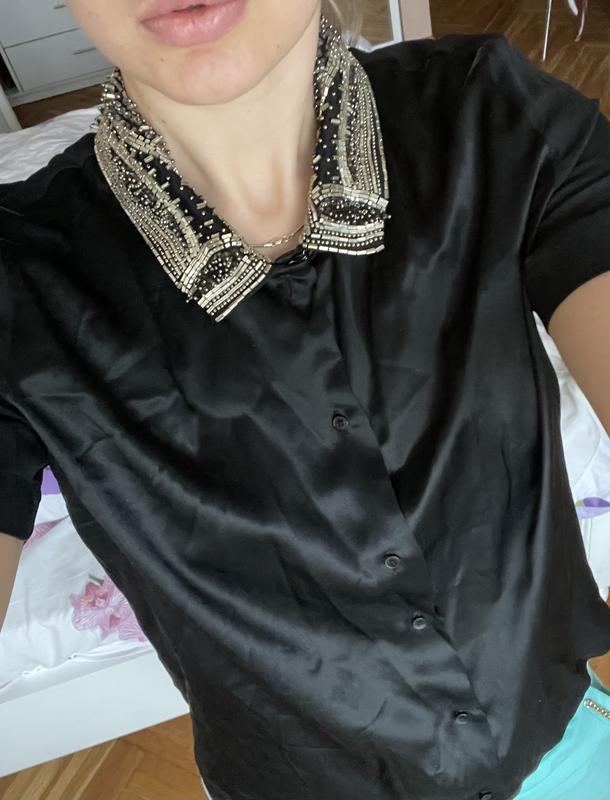 Рубашка с шёлковыми вставками и вышитым бисером воротником