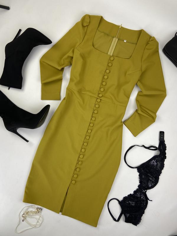 Сукня футляр з тканини костюмка, трохи тягнеться, розмір М (44/46): Талія 74 см Груди 88 см Стегна 94 см Довжина 104 см Рукав 64 см