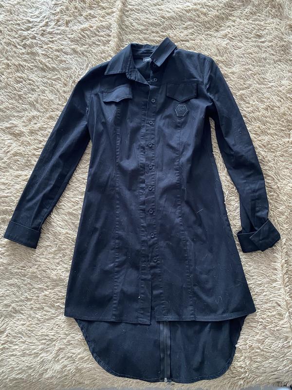 Довга сорочка з подовженим задом. Можна вдягати як плаття. Чорна розмір s-M