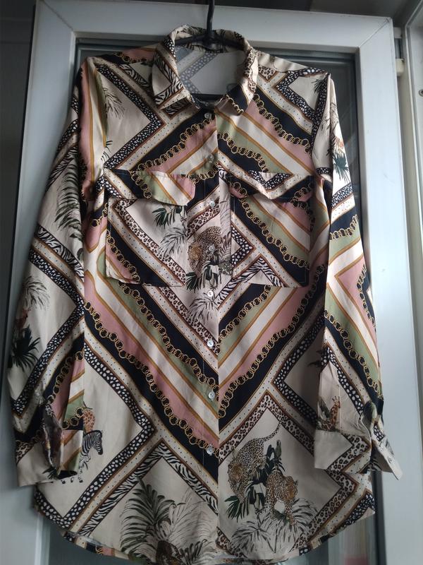 Новая, вискозная рубашка в принт С двумя накладными карманами Длина - 72, 78см ПОГ - 46см Рукава - 61 см