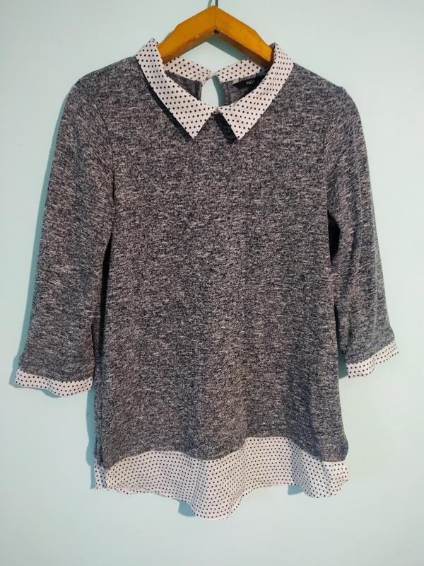 Кофточка с воротником и манжетами, удлиненная, приятная расцветка. Отлично подойдет на размер Л-ХЛ
