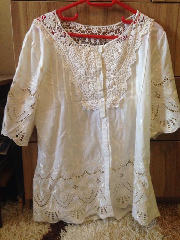 Блузка хб ручной роботы. Очень приятная к телу.Если возникнут вопросы,пишите,с удовольствием отвечу,дополнительные фото могу выслать лично.Возможен торг:) Доставка может быть осуществлена по Киеву лично и новой почтой либо другим сервисом,который Вам удобен.