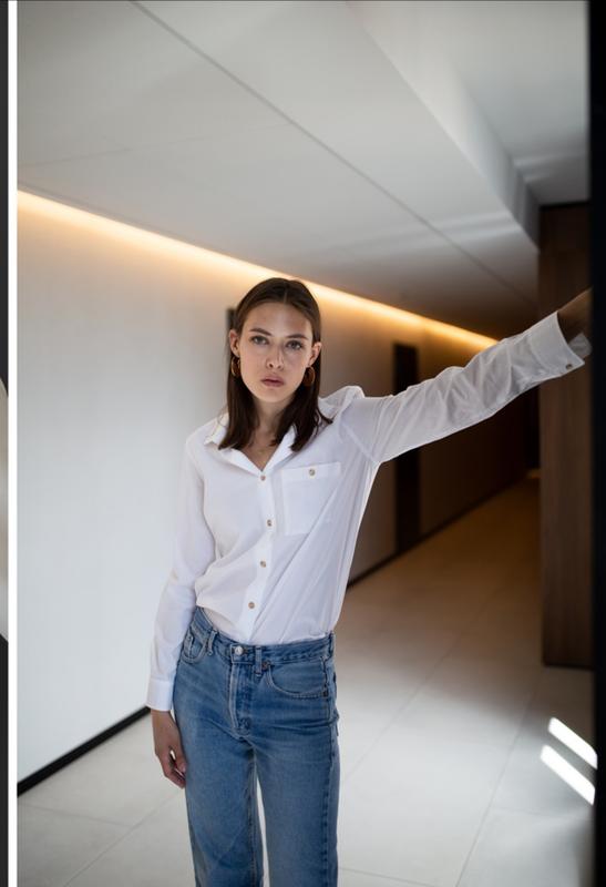 Белая, идеальная рубашка. 100% органический каттон. Очень плотная. Размер S - M. Состояние идеальное.