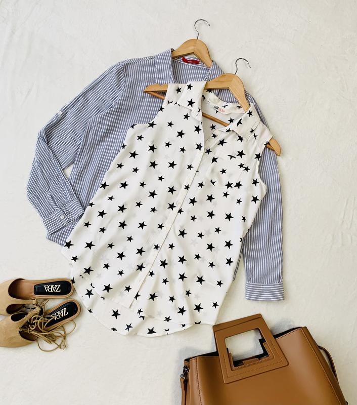Сорочка молочного кольору в чорну зірочку від H&M ПО грудей 48см, довжина 74см тканина 100% віскоза