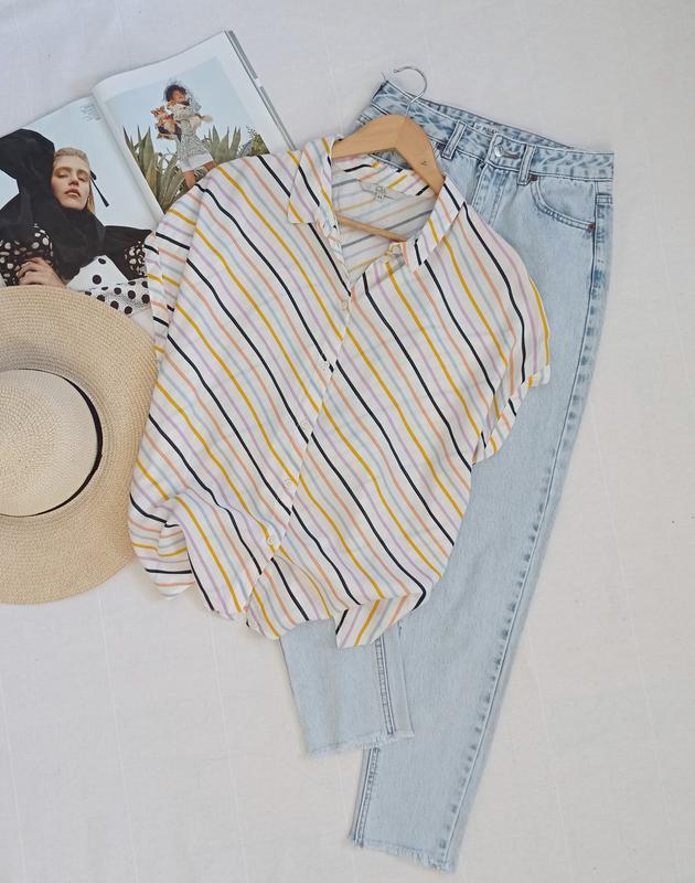 Яскрава сорочка в полоску фірми Clockhouse крою оверсайз, тканина котон, розмір L, ПО грудей 60 см, довжина 64 см