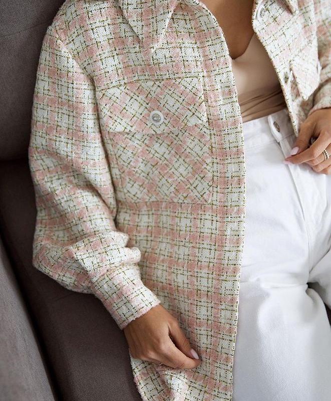 Объёмная твидовая рубашка,свободный крой,премиальное качество твида и фурнитуры ,отшито в ручную ,стильный фасон что позволит сочетать как с casual и классикой
