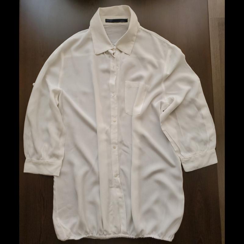 Рубашка на резинке, очень удобна,в носке, оверсиз,ткань легкая и тонкая, состояние идеальное,рукав можно регулировать